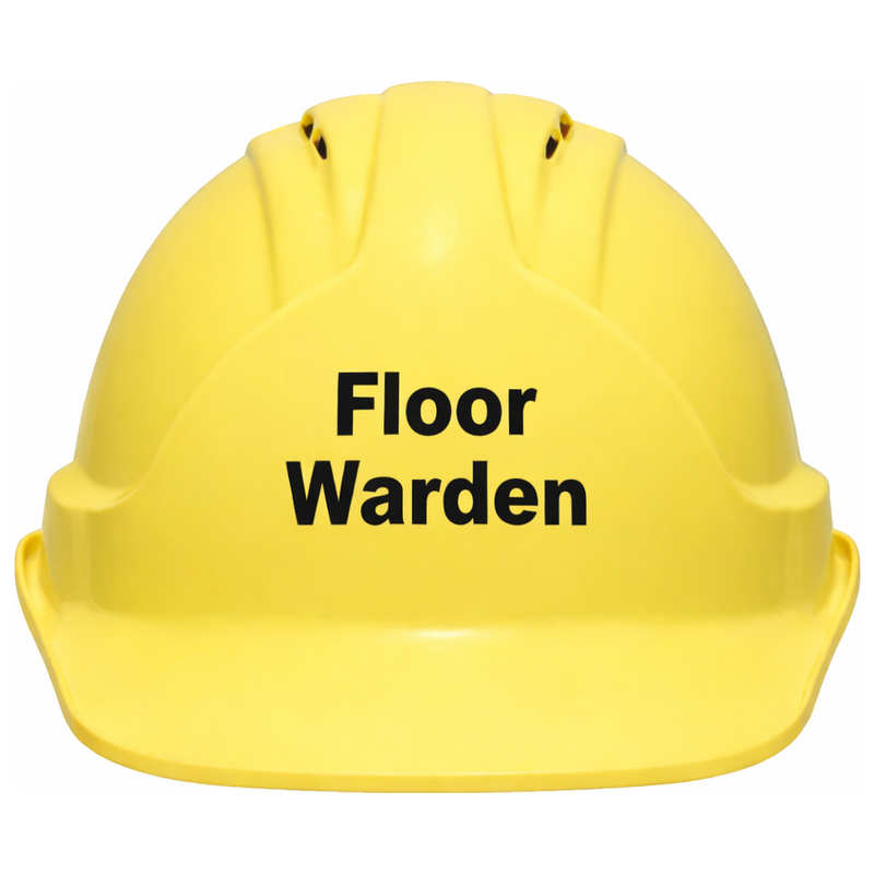 Set against a high-visibility yellow background, the hard hat features a bold black print reading “Floor Warden,” ensuring immediate recognition during evacuations or emergencies. Integrated ventilation ports help reduce heat build-up and minimise sweat accumulation, keeping the wearer cool and comfortable when it matters most.